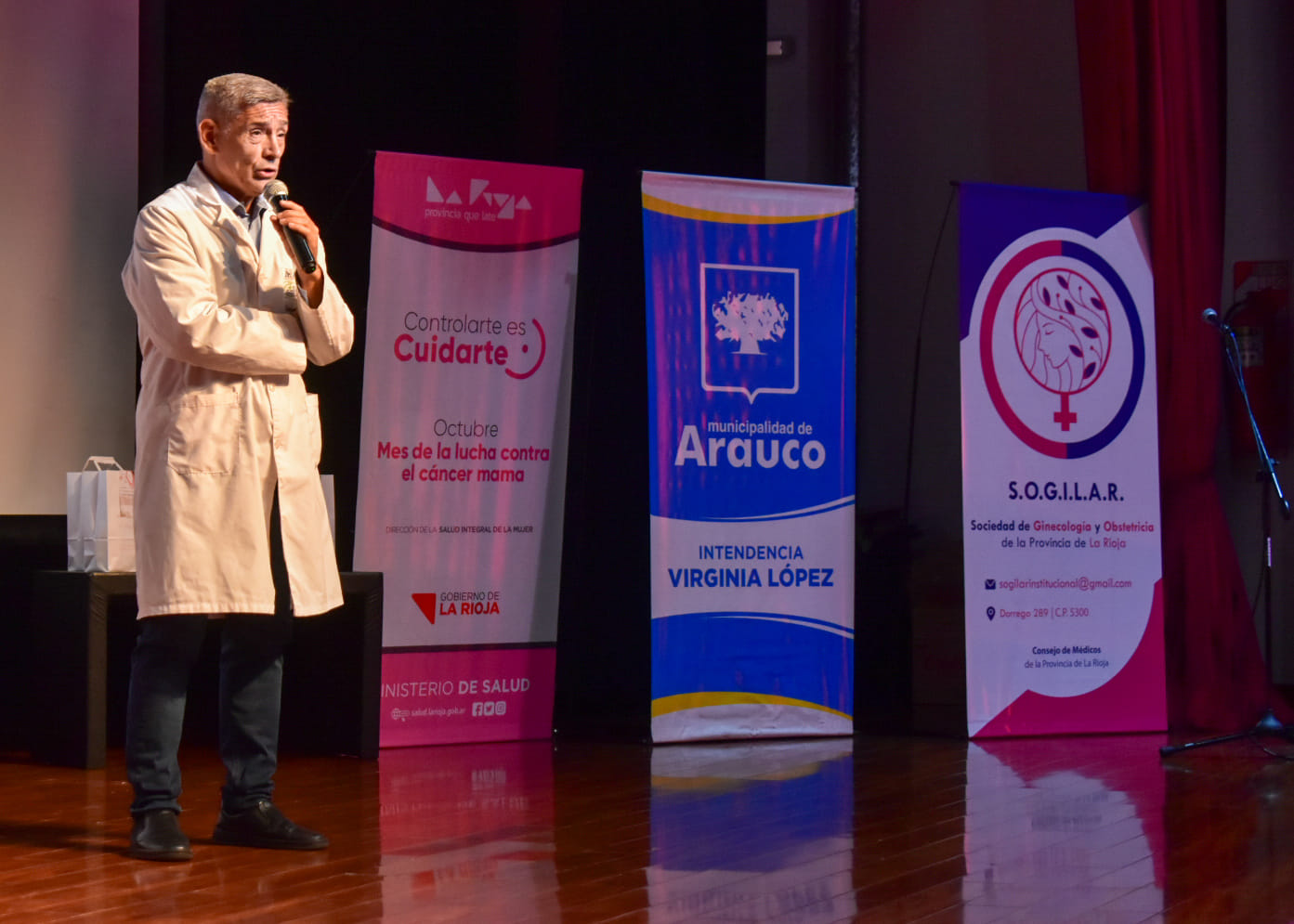 Esta actividad, organizada junto al Servicio de Mamografía del Hospital San Nicolás a cargo de la Lic. Cinthia Moreno, contó con la disertación destacados profesionales de la salud, tanto locales como provinciales. Entre ellos el Dr. Diego Corigliani quien destacó que estas charlas y jornadas de concientización se vienen realizamdo hace 14 años, destacando la importancia que tiene la prevención como una herramienta efectiva a la hora de dar lucha contra esta enfermedad, agradeció la presencia del Dr. Francisco Souza, Dra. Aida Karam, Lic. Allendez y la Dra. Nora Paula quie es presidenta de la Sociedad de Ginecología y Obstetricia de la Rioja